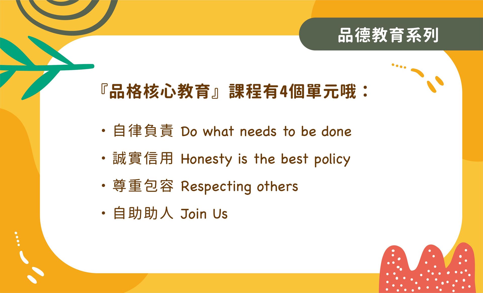 平台目前提供五大面向課程包含英語學習、全球議題、科技應用、品德教育、生活旅遊等,更多主題的課程將持續上線中,敬請期待。